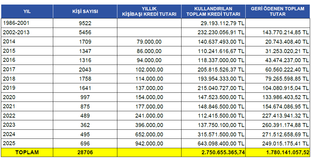 Kredi miktarı her yıl, Türkiye İstatistik Kurumu (TÜİK) tarafından Türkiye geneli için ilan edilen yıllık fiyat artış oranı kadar arttırılır. Kredinin miktarı 2026 yılı için 1.233.000,00 TL’dir.