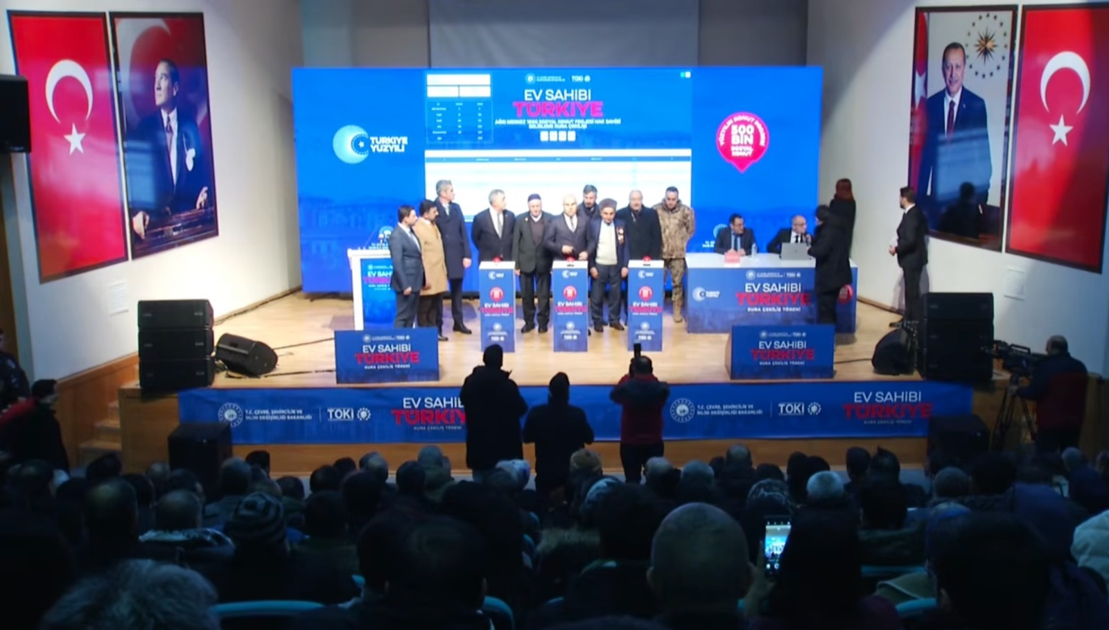 Konuşmaların ardından butonlara basılarak kura çekilişi başlatıldı. Konutların hak sahipleri, noter huzurunda çekilen kurayla belirlendi.