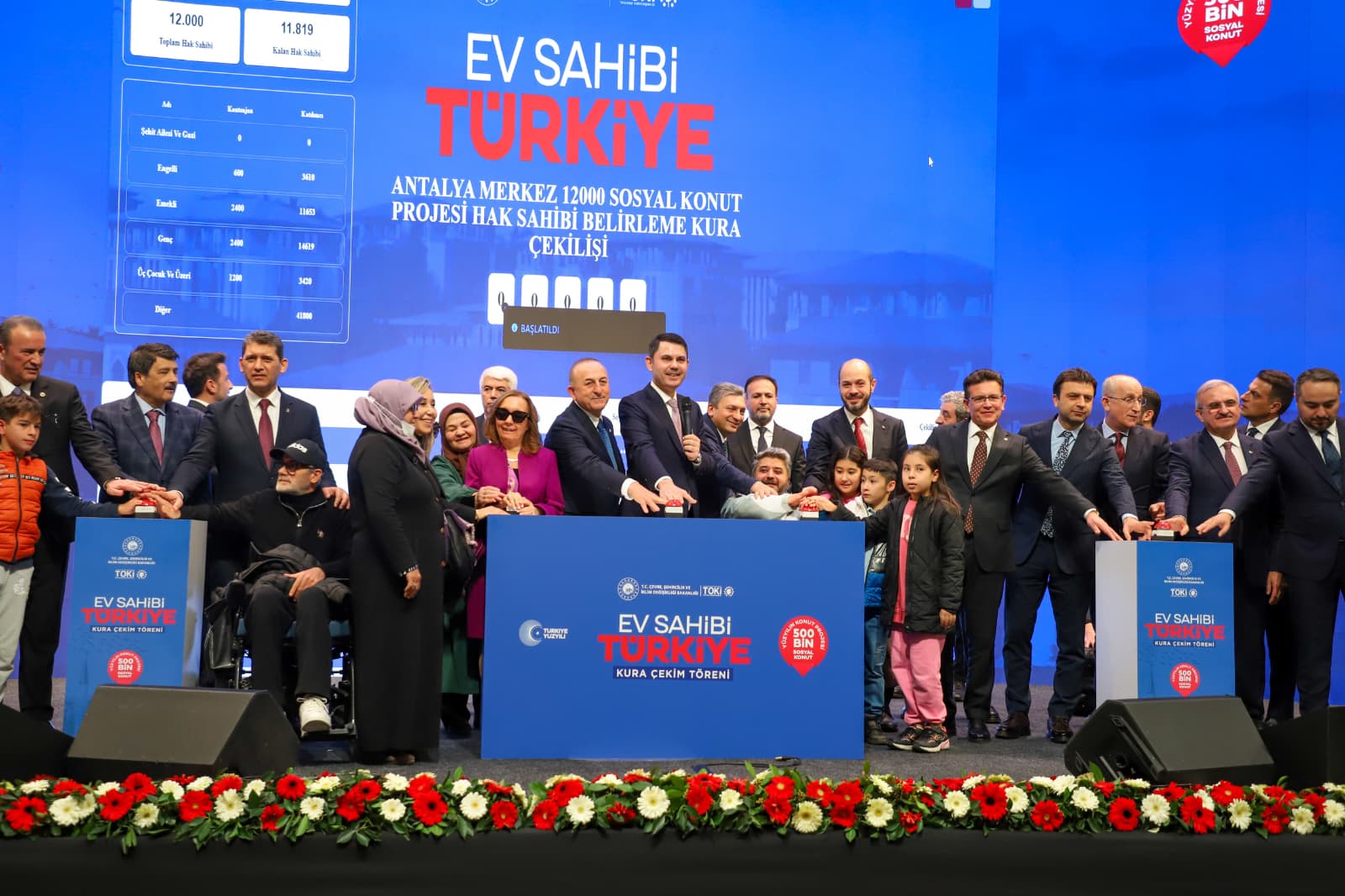 Konuşmaların ardından Bakan Kurum, "Artık kura zamanı. Antalya ve Bingöl'de kurada isimleri çıkan hak sahibi kardeşlerime şimdiden konutları hayırlı olsun diyorum" sözleriyle protokol üyelerinin de katılımıyla kura çekilişini başlattı.