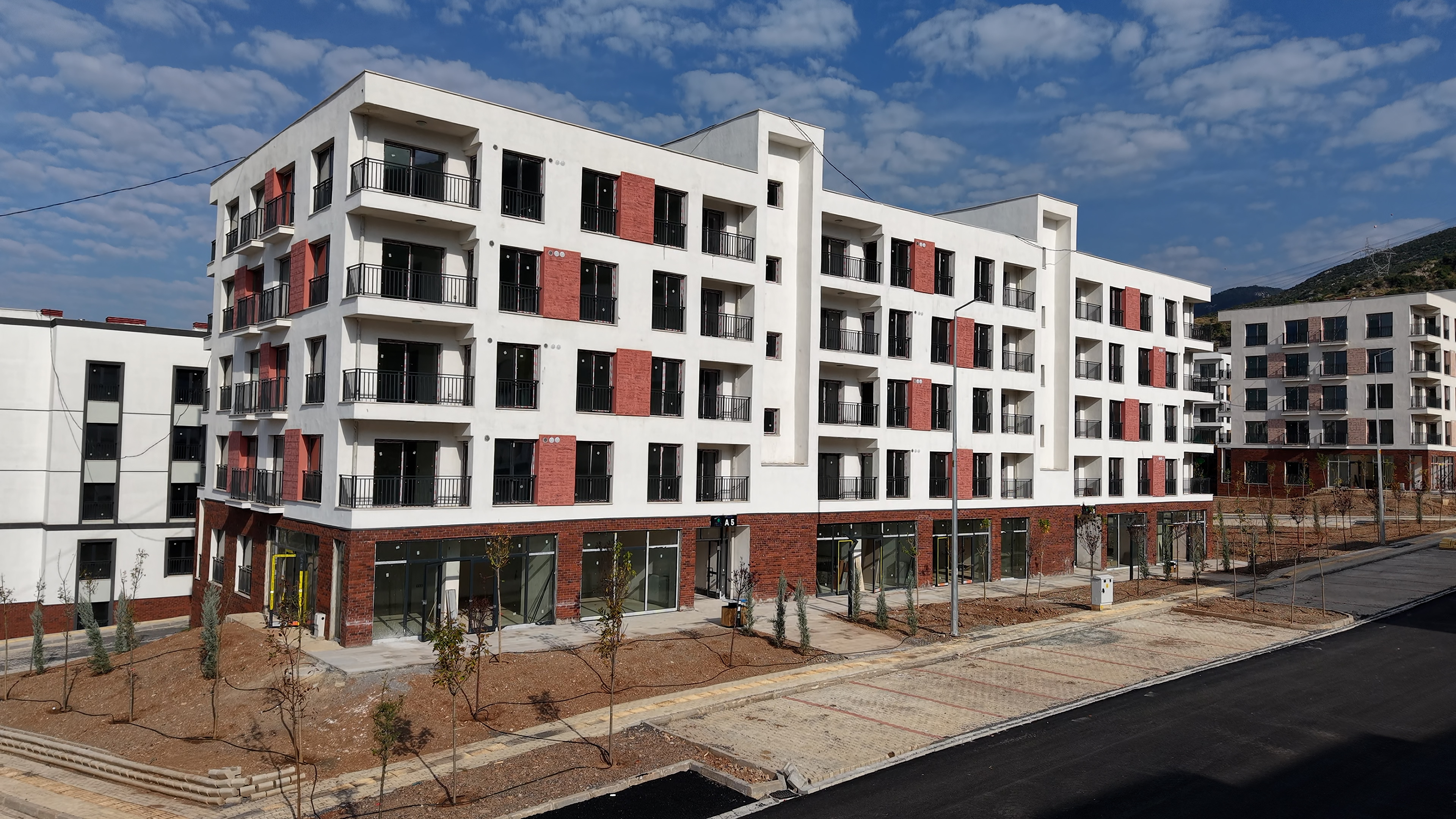 Yatay mimari anlayışıyla yapılan konutlar; radye temel üzerine, tünel kalıp sistemi ile depreme dayanıklı olarak inşa edildi.