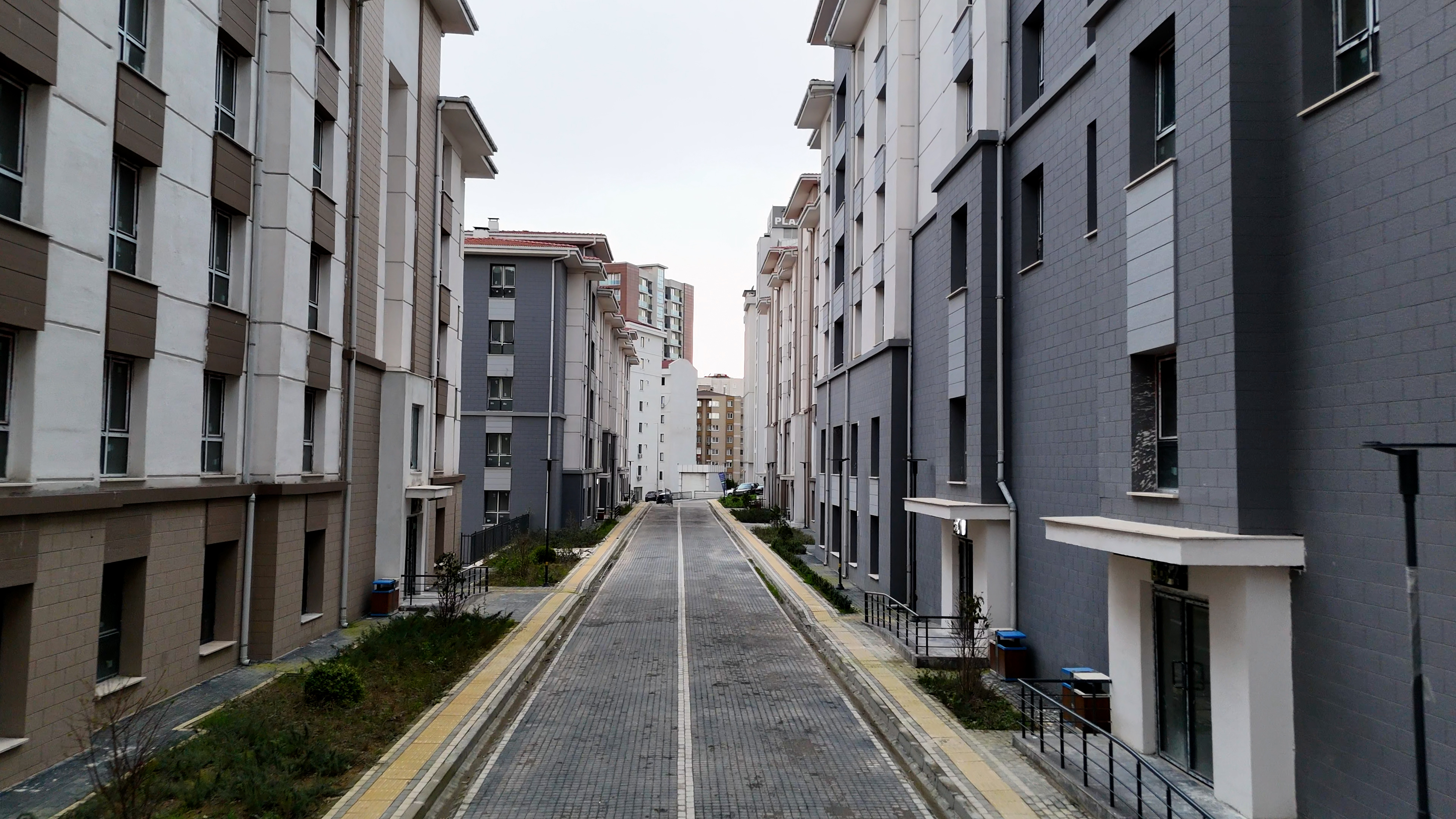 Yatay mimari anlayışıyla yapılan konutlar; radye temel üzerine, tünel kalıp sistemi ile depreme dayanıklı olarak inşa edildi.