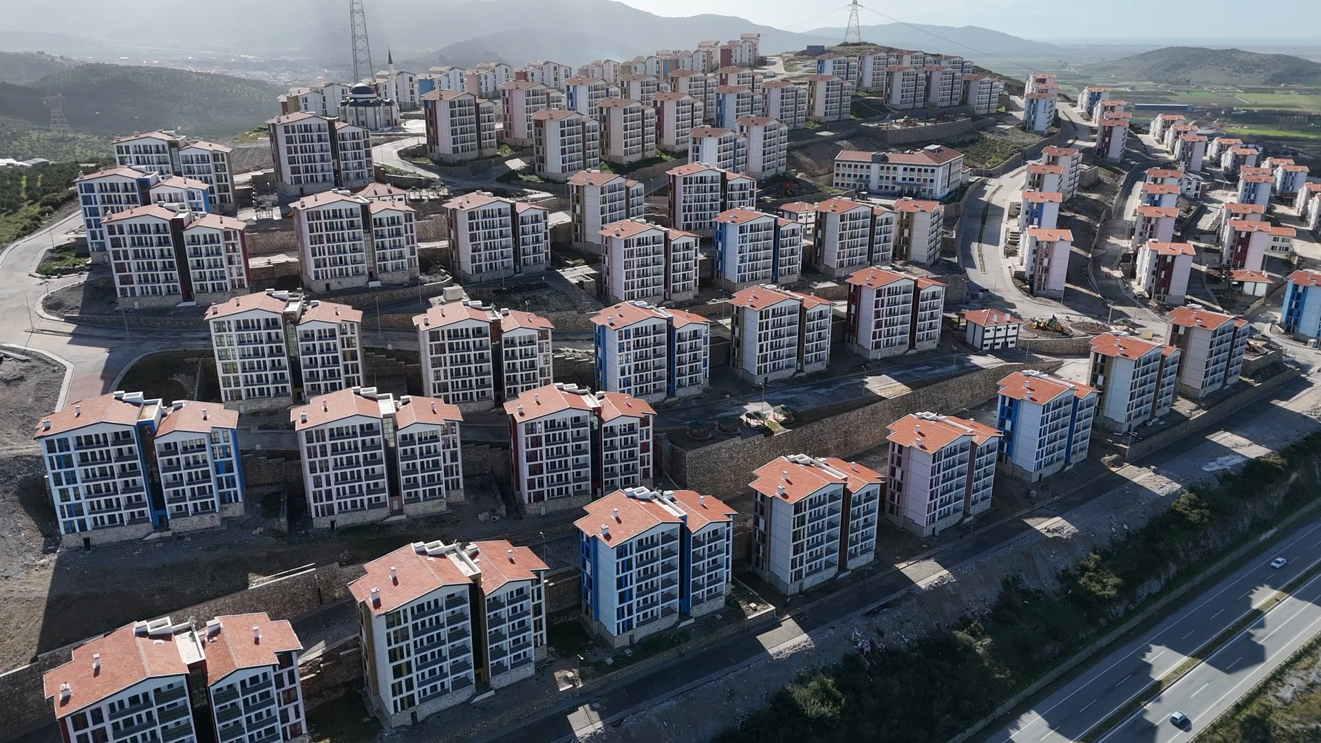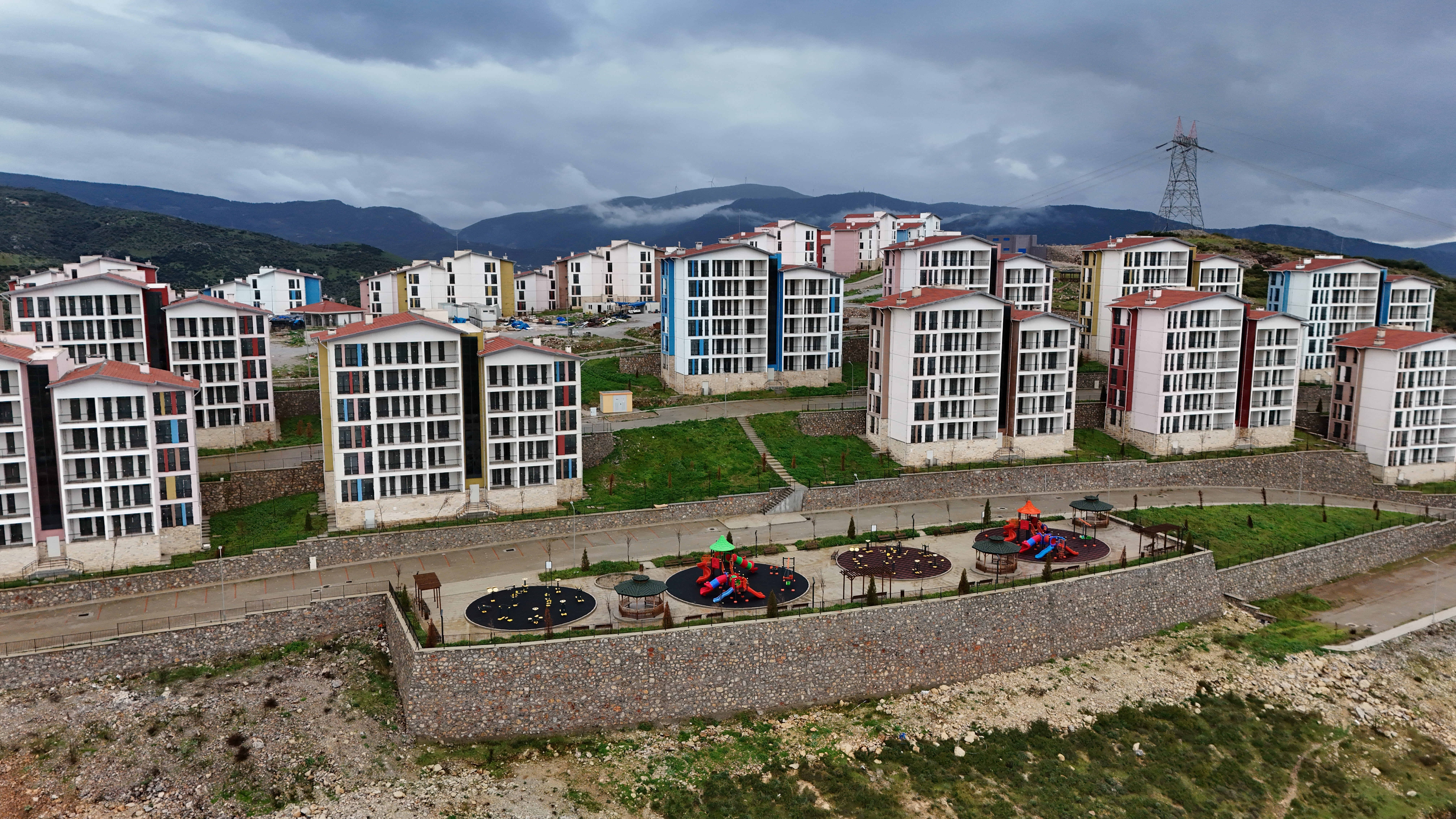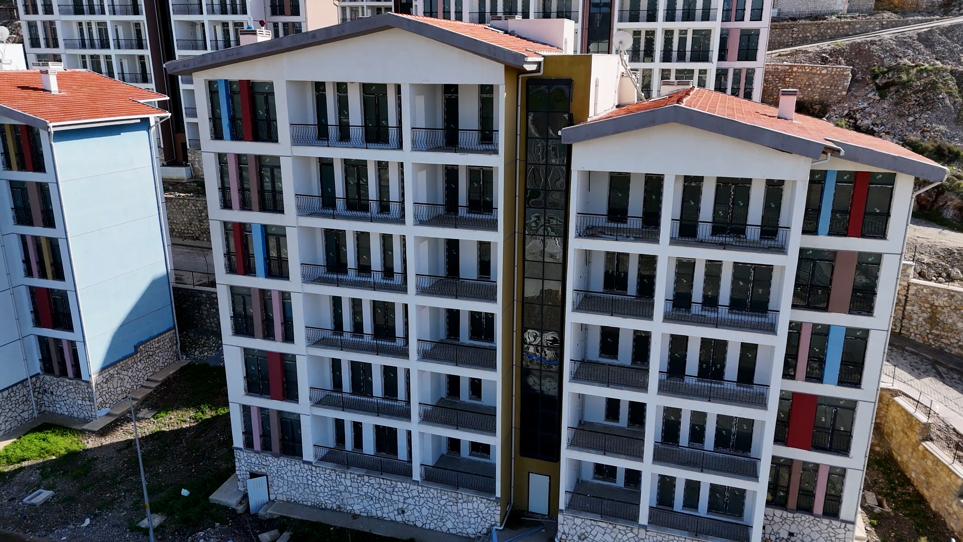 Yatay mimari anlayışıyla yapılan konutlar; radye temel üzerine, tünel kalıp sistemi ile depreme dayanıklı olarak inşa edildi.